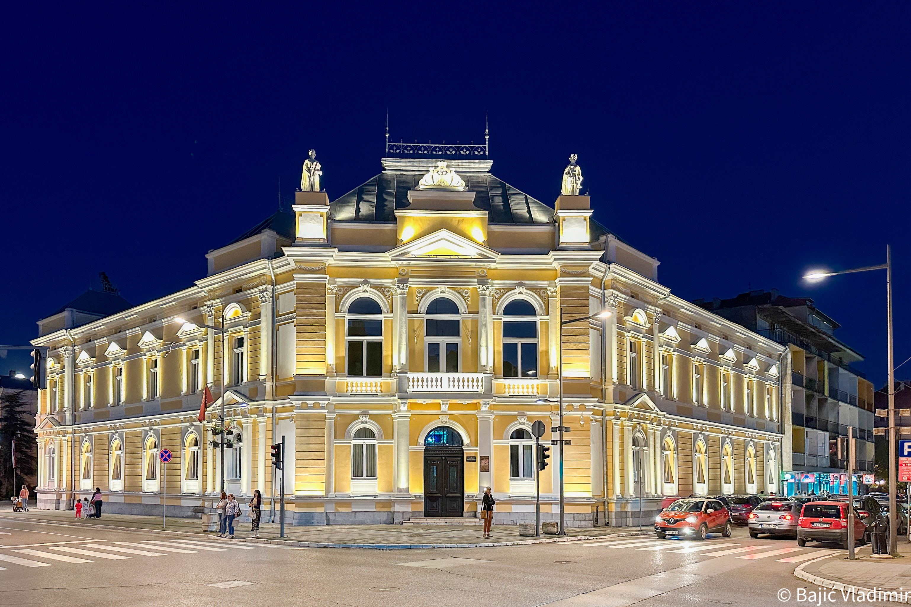 Фасада зграде Вишег суда у Ваљеву са партерним осветљењем